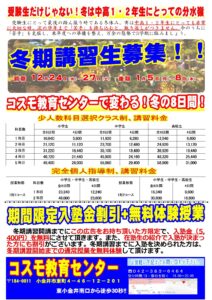 DM用チラシ 冬期講習 裏2025 2025.10.21 Tweet Share +1 Hatena Pocket RSS feedly Pin it 関連記事一覧 2022年『春期講習』のご案内 Native(外国人)講師の指導で自然な英会話を学びませ... 【営業再開のお知らせ】6月1日~ 2025年『冬期講習』のご案内《12月24日(水)~27... 充実の成績UPシステムで多彩な合格実績を確保いたしており... Native英会話は教育経験・指導力のある質の高い外国人... 2024年『春期講習』のご案内《3月26日~30日・4月... 2022年『冬期講習』のご案内 2021年『中学・高校準備講座』のご案内